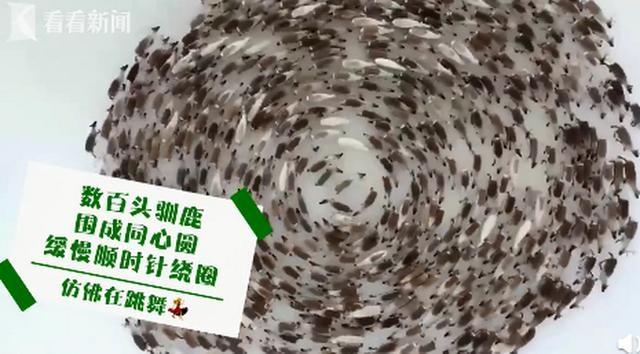 近日,俄罗斯摄影师列夫·费多谢耶夫用无人机拍下了一段壮观的画面,数百头驯鹿围成同心圆,缓慢地顺时针绕圈,仿佛在跳舞一般。