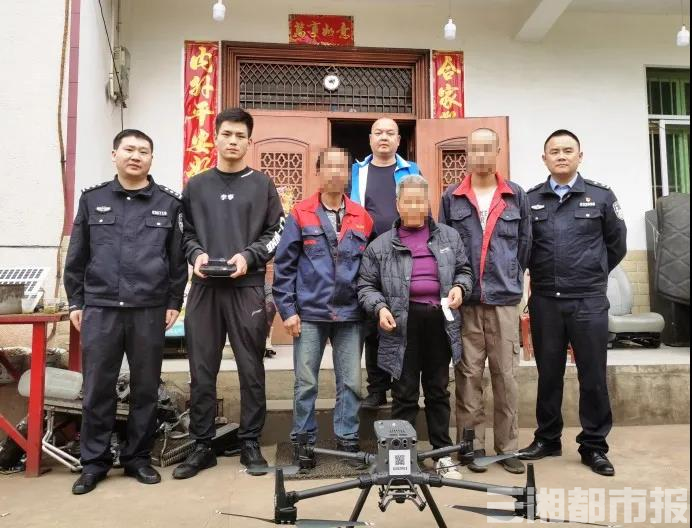 株洲天元区雷打石镇先锋村,一名59岁的妇女跟随家人上山采茶走失,家属、村镇干部及社会救援志愿者搜山寻找三天两夜未果。株洲公安秘密武器出马,民警遥控指挥一架专业无人机升上高空,半个小时就发现了迷路老人。