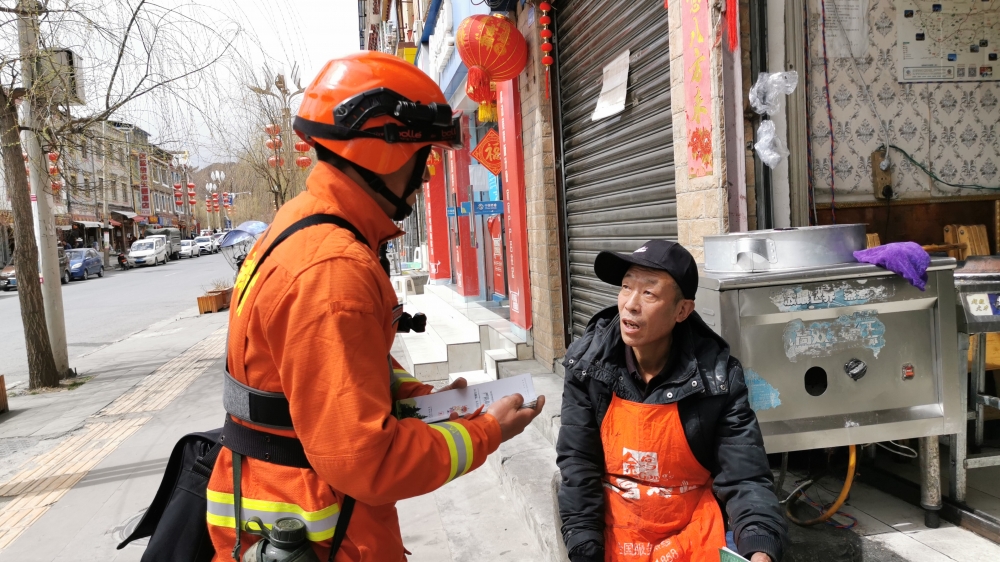 “阿哥,进入防火期了,咱要注意防火啊!在外边放牛兜里可别有烟和火,千万别室外吸烟啊!”,“嗯,这些我都知道,你就放心吧!”“感谢你对我们防火工作的大力配合和支持。”这是4月1日,康定市森林消防中队防火巡护员曾广东和种地居民之间的对话。