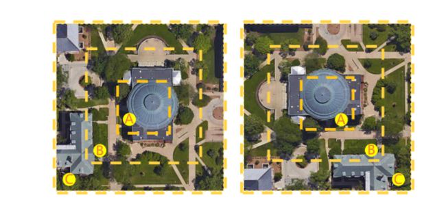 一般来说,无人机或卫星等航拍是以广角来捕捉场景图像。当获得地理目标时,围绕目标的上下文信息也被捕获。该论文指出,如果两个地理目标之间没有明显的差异,人类视觉系统很难识别出真正匹配的目标。