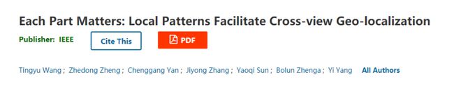 2 月 22 日,杭州电子科技大学王廷宇博士在 IEEE TRANSACTIONS ON CIRCUITS AND SYSTEMS FOR VIDEO TECHNOLOGY 期刊发表了题为《每个部分都很重要:本地模式有助于跨视图地理定位》(“Each Part Matters: Local Patterns Facilitate Cross-view Geo-localization”)的论文。