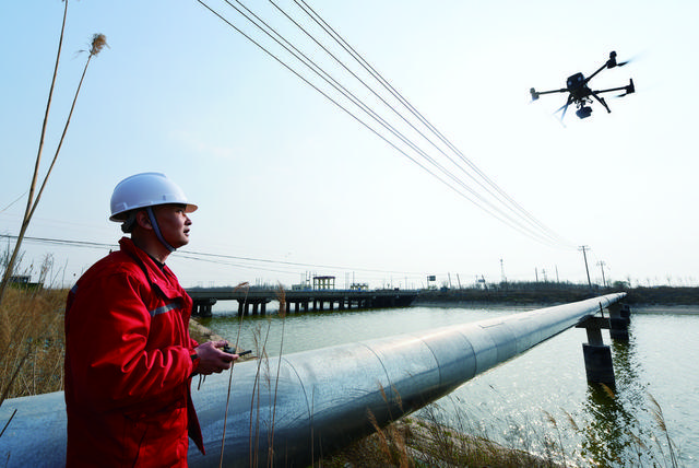 4月6日,胜利油田河口采油厂人力资源服务中心无人机项目部曹金东、杨晓峰两名工作人员,利用无人机,用时不到10分钟,将跨越挑河近50米宽的输油管线进行了全面“体检”。无人机项目部经理刘新国介绍,过去这样的特殊巡检,即使两个人划着船、架上梯子,爬上爬下,用一天的时间都很难完成,而且还存在着登高和涉水的风险隐患,自从有了无人机以后,特殊区域巡检问题都迎刃而解。