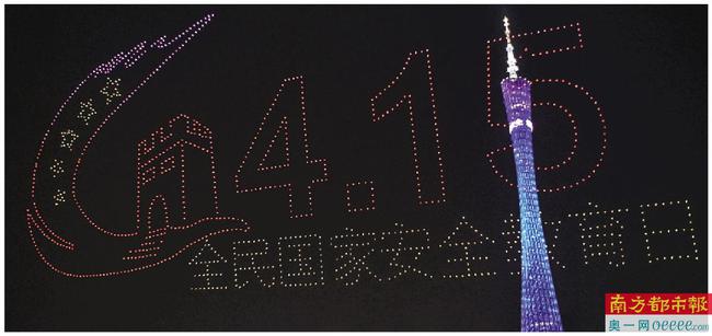 4月15日是我国第六个全民国家安全教育日。4月13日晚上8点至8点15分,广东首届“国家安全人人有责”主题无人机队表演闪耀羊城,珠江水畔亮起美轮美奂的灯光秀。