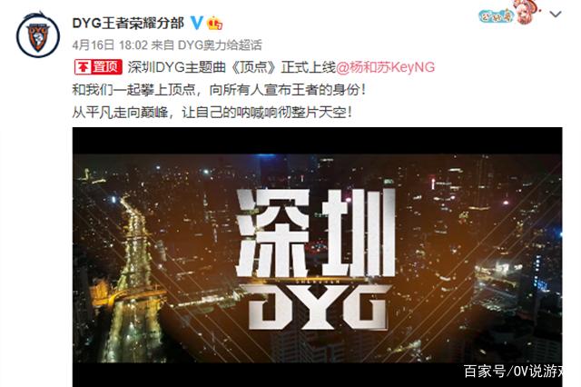 除了盛大的“入城仪式”之外,深圳DYG俱乐部还在当晚公布了全新的战队主题曲《顶点》,那响彻整片夜空的Rap,那一句“从最开始逆袭,到获得了一席之地”,诉说着他们“从平凡走向巅峰”的励志过程。