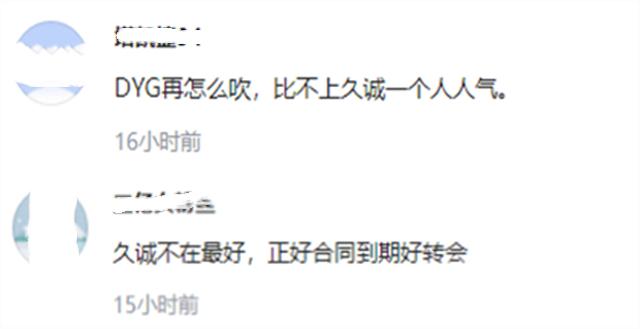 由于久诚并未在深圳DYG俱乐部的“入城仪式”上现身,所以不出意外的成为了网友们一轮的焦点,有人嘲讽“DYG再怎么吹,比不上久诚一个人人气”,也有人认为“久诚不再组好,正好合同到期好转会”。