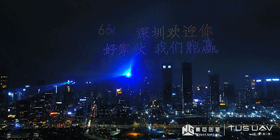 深圳欢迎你、我们能赢、SZDYG、冲冲冲……无人机组成的弹幕,以夜色为幕布,更显热血沸腾。弹幕刷起来吧水友们,为我们的少年们喝彩!