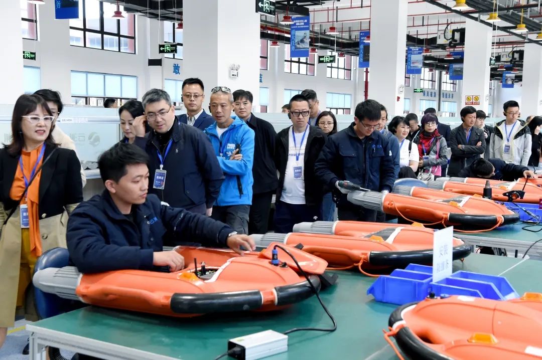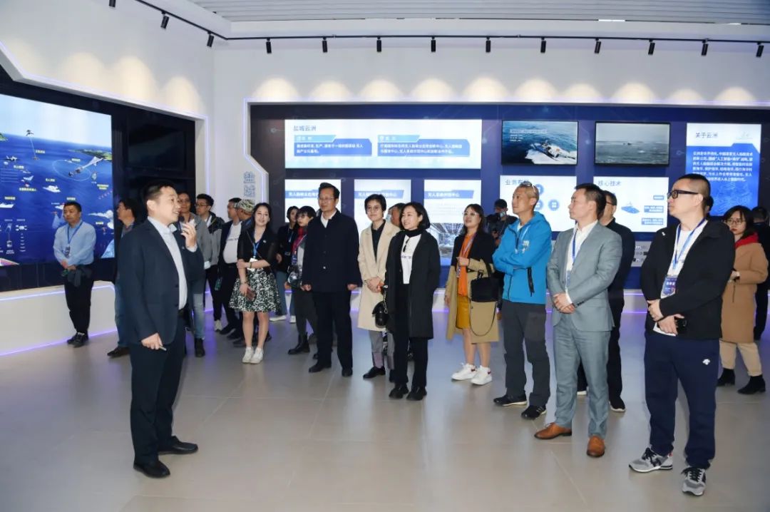 4月17日上午,港科大校友一行来到了盐城云洲,参观了公司多媒体展厅、实验室及总装车间。云洲智能总经理成亮向校友们介绍了从2019年云洲落地盐城以来的项目开展情况。在短短不到两年的时间里,盐城云洲已经建成无人船科技文旅项目集研发、生产和销售为一体的业务总部,并依托盐城中华海棠园打造了全国首台无人船光影秀《船说海棠》和智慧城市水域管理应用示范基地。