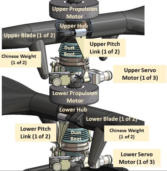 绝技三:双旋翼,火星直升机采用了两幅一样的共轴旋翼,它们旋转方向相反,可以抵消旋转对轴杆产生的力矩。