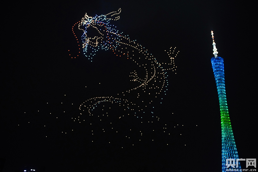 由无人机组成的”科技巨龙”在天空腾飞(央广网记者 官文清 摄)