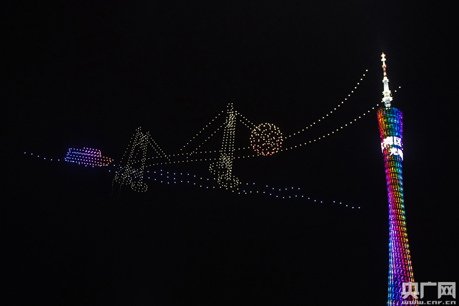 作为此次活动的重磅环节,4月19日晚,1000架无人机亮相广州夜空,以科技的方式描绘出“大湾区、大未来”的美好愿景。