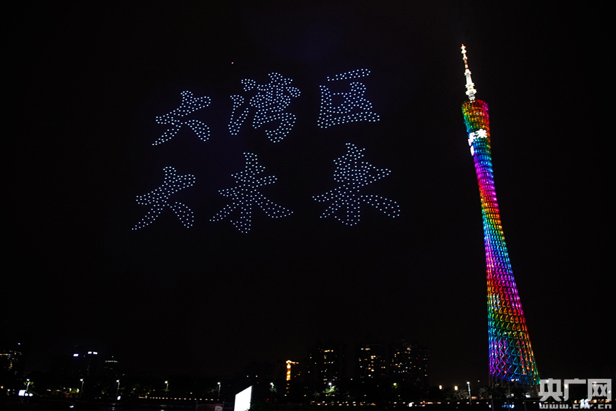 无人机在空中拼出“大湾区 大未来”的字样(央广网记者 官文清 摄)