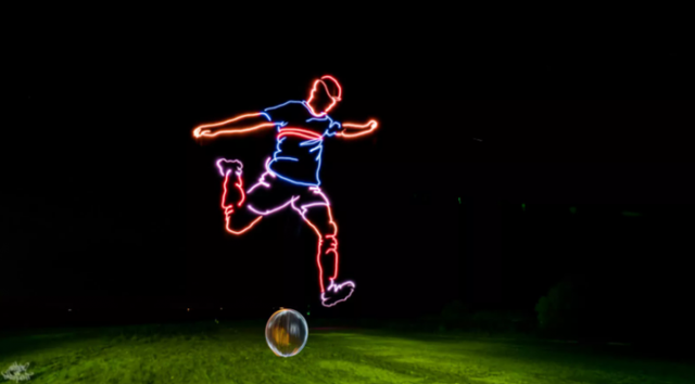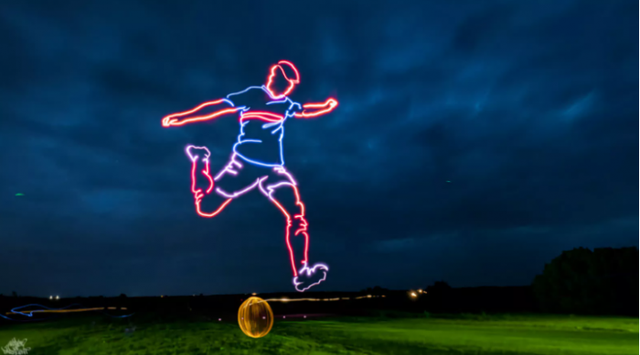 虽然Frodo lvarez的灯光画可能不像观看无人机实时动画那样壮观,但他最新作品的过程还是很有趣。lvarez经营着一家名为 "Children of Darklight "的专业光绘服务公司,他最近在马德里一家名为Umiles的无人机灯光秀服务的帮助下,在天空中画了一个巨大的足球运动员。