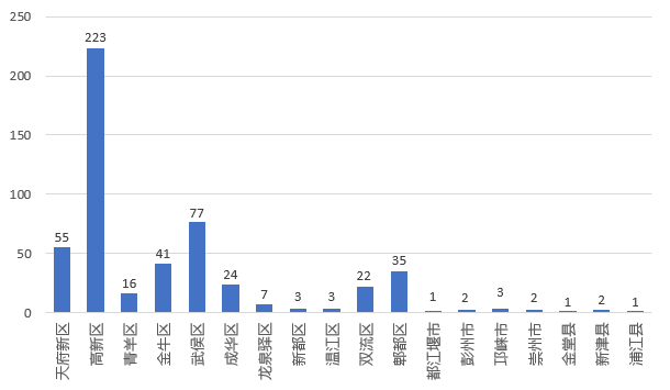 据2018年成都市经信委摸底调查数据显示成都市已有无人机相关企业518家,超80%的企业位于高新区、武侯区、天府新区、金牛区和郫都区。高新区作为国家重要的航空产业基地,无人机企业分布较为集中,具有多家龙头企业。