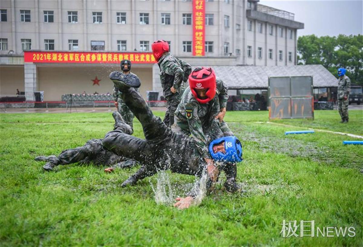 湖北省军区合成参谋暨民兵教练员比武竞赛4月22日、23日在汉举行。来自全省各地市州的26名合成参谋、39名民兵教练员,围绕15个项目展开比拼。极目新闻记者在现场看到,虽然比赛中一度下起了雨,但参赛队员们的求战精神并没有受到影响,立足实战练兵,成为比赛的主旋律。