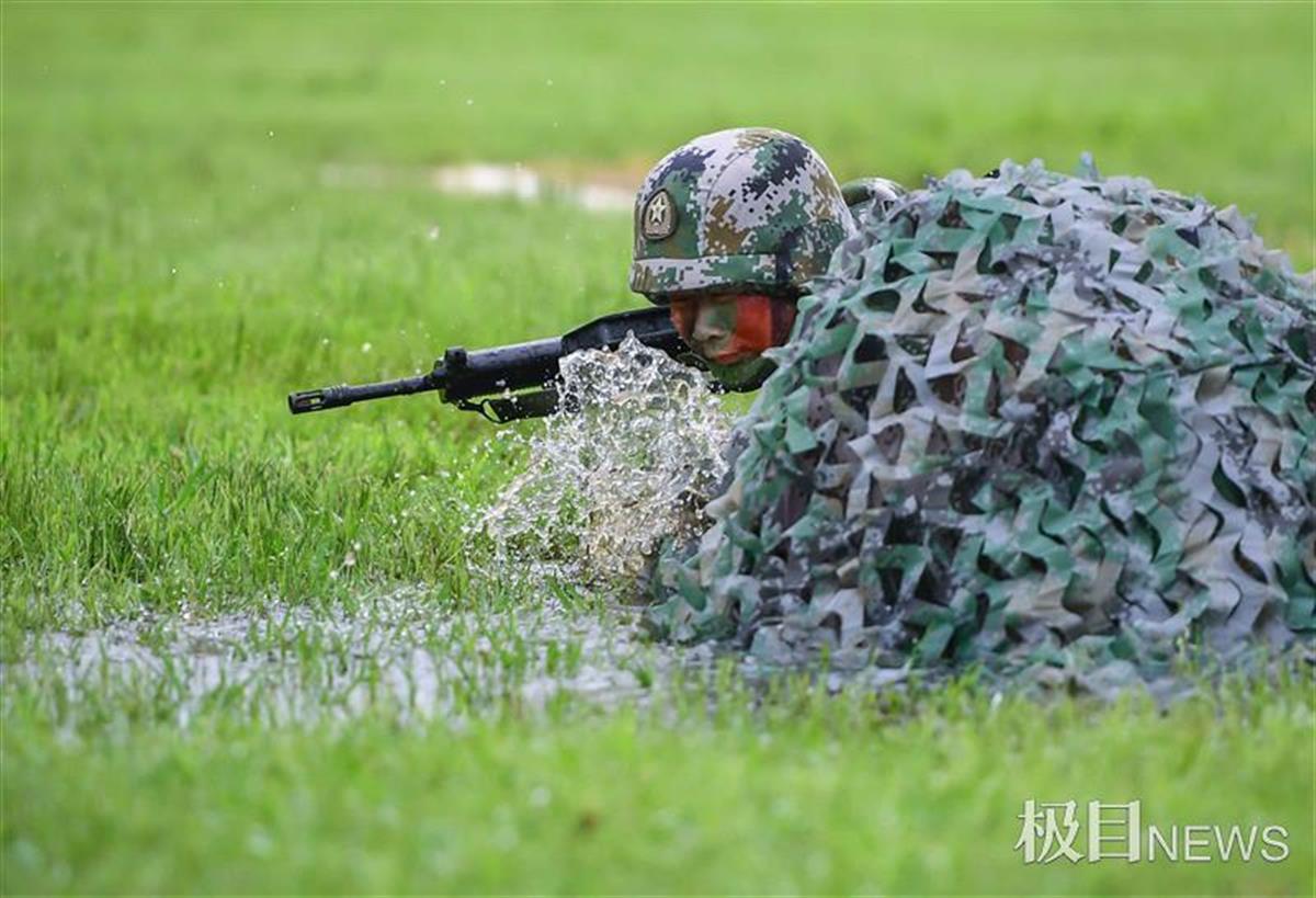 战场上的对手不会因为天气而放弃进攻,赛场上的选手也没有因为下雨而稍加懈怠。擒拿格斗、盾牌操,都是在雨中照常进行。