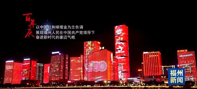 以中国红和璀璨金为主色调,配合《没有共产党就没有新中国》激情昂扬的旋律,“热烈庆祝中国共产党成立100周年”特效喷薄而出,展现福州人民在中国共产党领导下奋进新时代的豪迈气概。