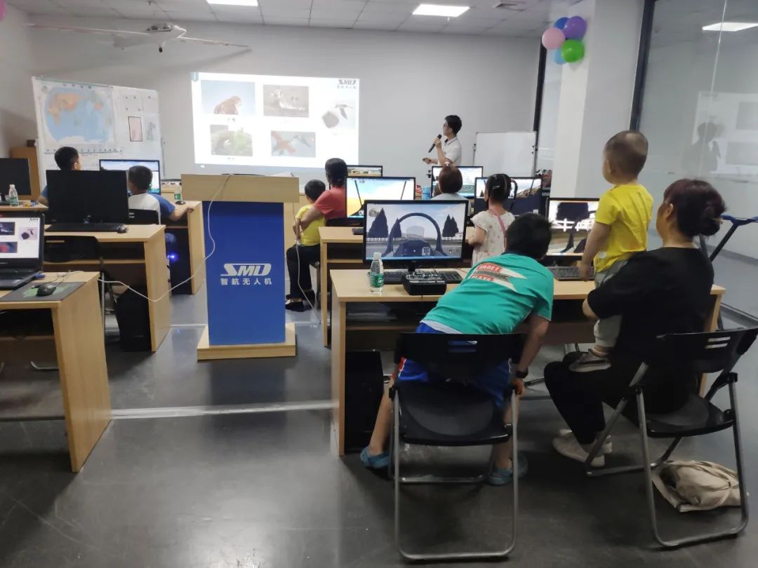 龙龙老师指导大家用固定翼第一视角模拟飞行,有些小朋友沉迷在飞行的乐趣之中,无法自拔