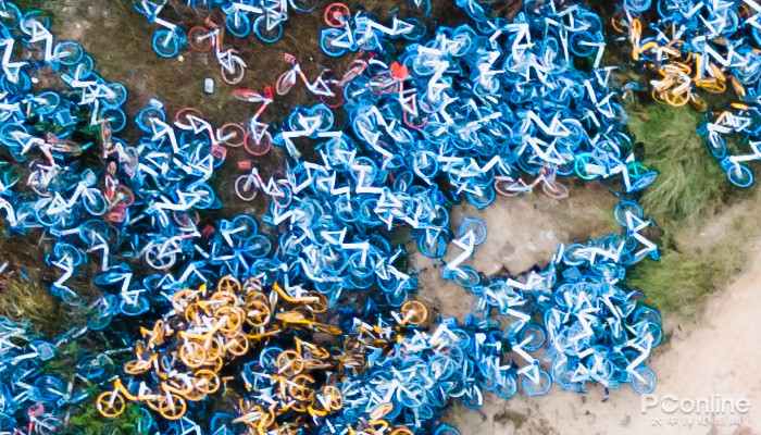 上图,是我有一次把无人机飞到平时去不到的区域直接俯拍的。我一开始只是好奇为什么会有一片蓝色,待我把飞行高度降低后我才惊觉,这些都是平时马路上的共享单车。不知是何原因,它们全部被集中堆放到这里。