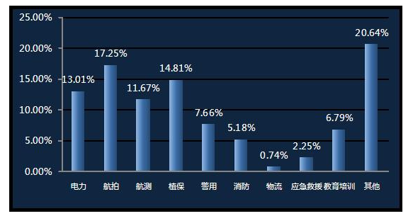 此外,影视航拍、航空测绘、电力巡检也消化了市场上很大一部分飞手,这四个领域共计吸纳的飞手达到55%。