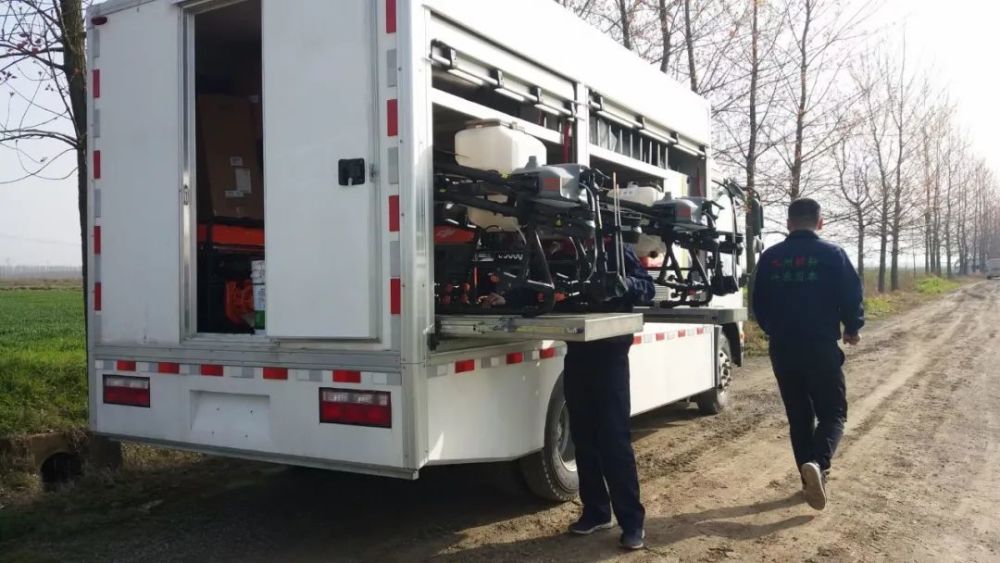 可以同时装载3台无人机,实现规模化作业的飞防母车。(受访者供图)