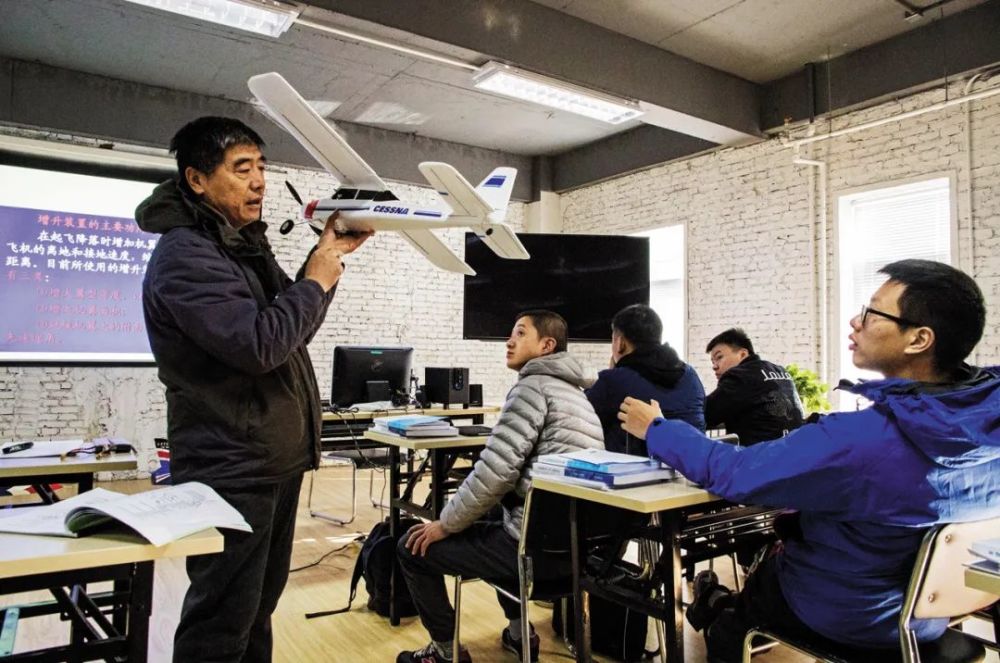 2016年11月,北京市某无人机培训机构,教员手持固定翼无人机进行讲解。(视觉中国)