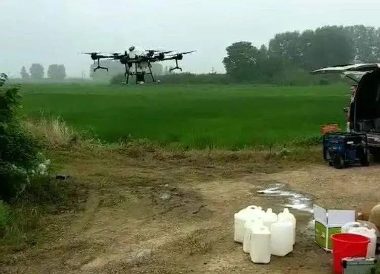 无人机在田间执行喷洒农药作业。(受访者供图)