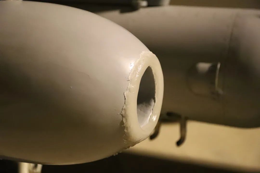 球形天线罩前缘结冰严重(左侧毛球状为结冰体)