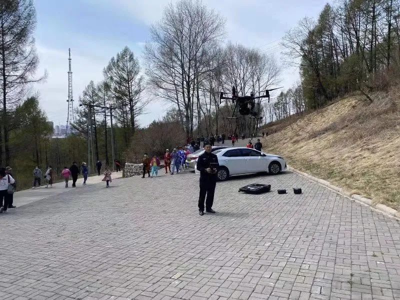 鹤岗市公安局警航大队在假期中分成6个小队携带多型号警用无人机前往人民广场、北山公园、新世纪广场等人群密集区域执行巡逻、宣传、侦查任务。