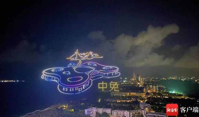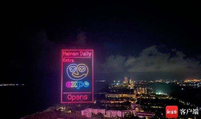 据悉,这是由海南日报、南海网、南国都市报联合一飞(海南)科技有限公司举行的无人机表演秀,旨在以创新、炫酷的方式为消博会献礼。