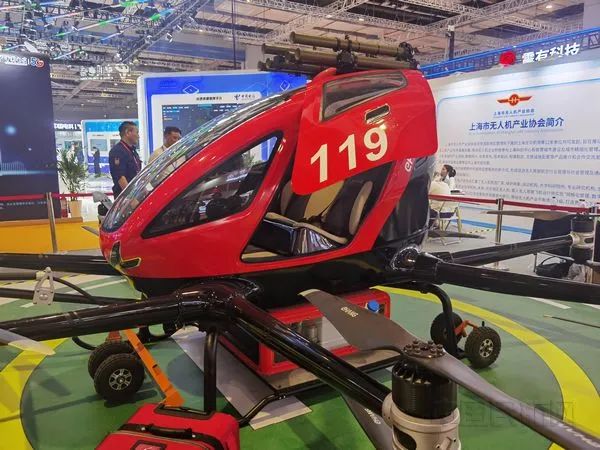 5月7日,首届长三角国际应急减灾和救援博览会在国家会展中心召开。本次博览会由上海、江苏、浙江、安徽应急管理厅(局)联合上海市贸促会共同主办。博览会上,各个展台上的各种无人机成为亮点。其中上海市无人机产业协会携会员单位虹安应急救援保障中心(简称“虹安”)一同设立展位,并带来了一架国内首款载人无人机——亿航216消防无人机。此应急无人机成为了会展中心内的最耀眼的明星,到展台观摩、咨询、试乘者络绎不绝。