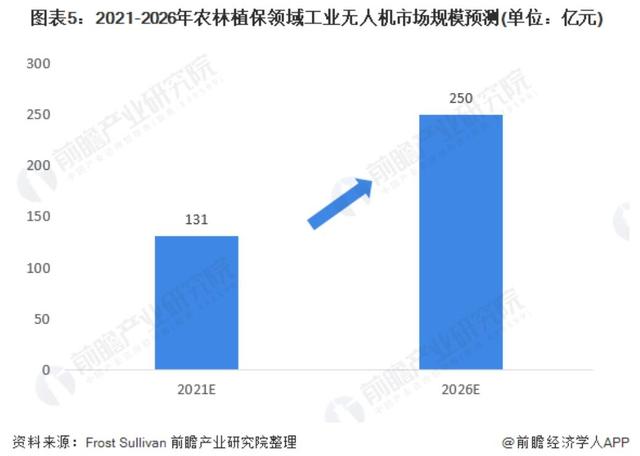 而进入2021年,行业更多机遇也是加速凸显。例如,疫情带来的影响就未曾完全消失,无人化作业需求和粮食安全带来的挑战依然存在,这将持续推动植保无人机的发展与应用。在此情况下,可以预见今年植保无人机应用将再创新高。Frost&Sullivan机构预测,2021年,我国农林植保领域工业无人机市场规模约达131亿元,2026年约达250亿元。