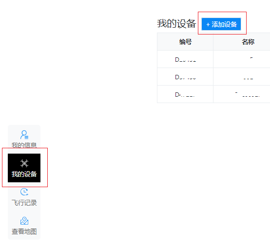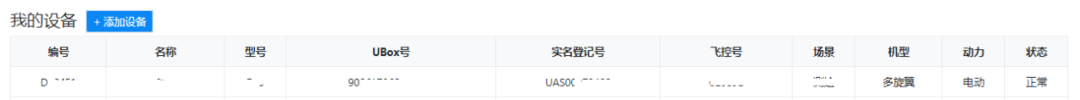 点击“我的设备”,再点“添加设备”就可以添加无人机和UBox的相关信息。