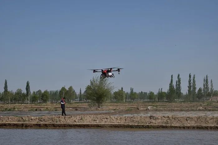 5月8日,自治区农业农村厅农业机械化管理处和自治区农业机械化技术推广站在灵武市梧桐树乡杨洪桥村组织召开无人机直播现场演示会,试验示范推广无人机直播技术。该技术是灵武市综合智能化园区依托宁夏绿先锋农机作业公司,利用无人机在原有植保飞防的基础上,开展飞播、施肥等先进技术推广,经过一年的试验,今年引进升级扩容的大载重量无人机,计划扩大无人飞播下种试验示范面积。