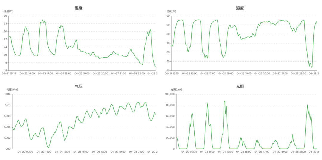 农业物联网设备提供农田环境各类信息(图为 4 月最后一周天气及环境变化)在水稻生长的关键时期,丽华还选用极飞遥感无人机进行高清地图测绘和飞行巡田。丽华只需通过极飞智慧农业系统设置兴趣点,就能生成飞巡任务,助手在系统提示下到指定地点启动极飞遥感无人机,丽华足不出户就能获知田间飞巡图像。