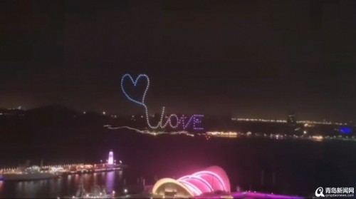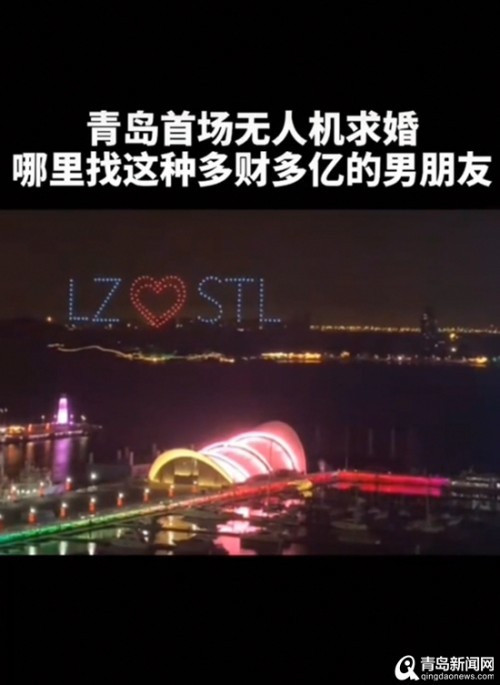 据这场求婚的策划者文文介绍,青岛奥帆中心进行这样浪漫的无人机求婚,尚属首次。她表示,“这一次是由150台无人机拼成的巨幅画面,准新郎是在海尔洲际酒店天台上完成了这场浪漫的求婚,那里也是观看无人机表演的最佳位置。此外,这次求婚提前一天就在短视频平台上进行了预热,近万名网友对这场求婚进行了围观。”
