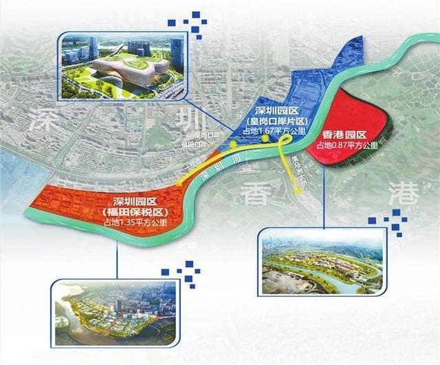 河套深港科技创新合作区坐落在深圳市福田区南部与香港接壤处,面积3.89平方公里,在香港有0.87平方公里的园区,在深圳有3.2平方公里的园区。作为粤港澳大湾区唯一以科技创新为主题的特色平台,合作区将为打造粤港澳大湾区国际科技创新中心提供有力支撑。