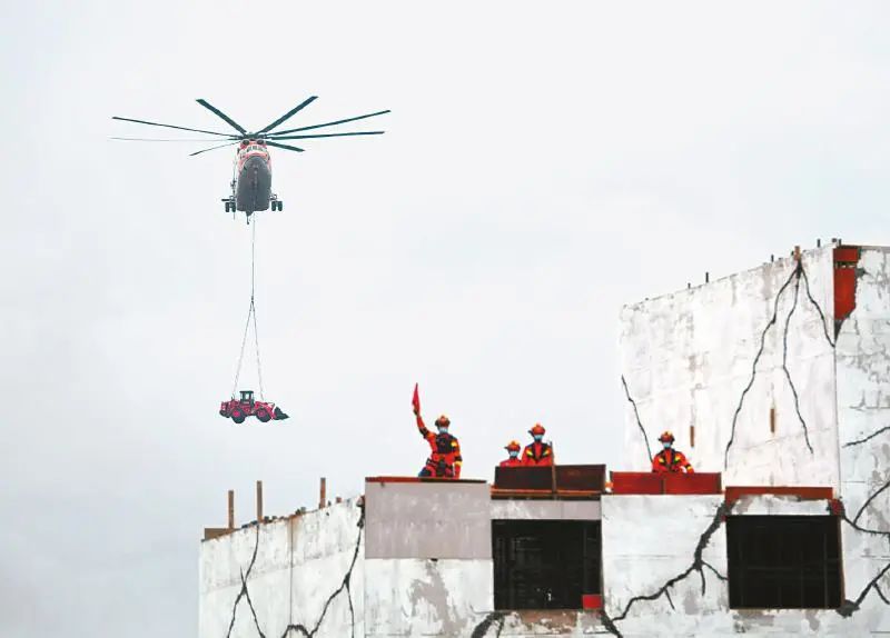 南方航空护林总站米-26直升机运输救援工程机械。记者 肖雨杨 摄