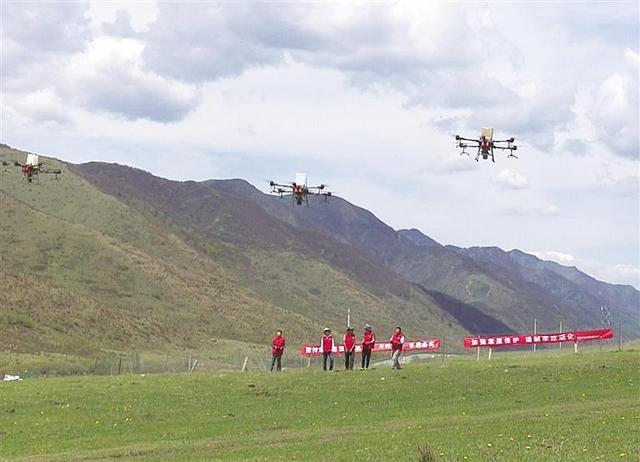 据介绍,本次项目租用植保机6架进行飞播,补播牧草甘南垂穗披碱草、冷地早熟禾、紫羊茅三个品种。