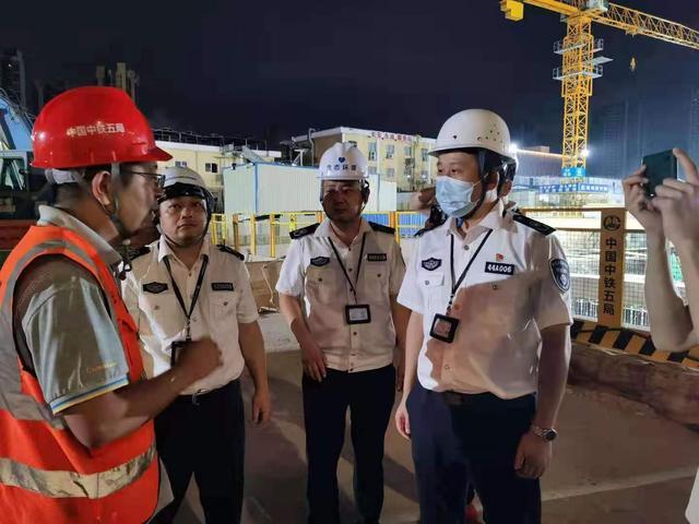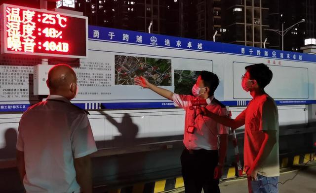 5月17日晚上11时,执法人员一行首先来到了位于龙岗区高科西路,路两旁各有一个住宅工地,据说此前曾有附近居民投诉附近工地有超时施工,噪音扰民。“这边已经基本建好的是中海阳光橡树,旁边正在挖地基的是属于恒大的项目,今天暂时没有发现两个工地有超时施工等违规行为。”市生态环境局龙岗管理局宝龙所丘学伟告诉记者。他还指出,除了执法人员24小时不间断巡查外,还在工地主要进出口处安装了监控设备,只要有超时施工行为执法部门就能第一时间获悉。随后,执法队伍对宝荷沿线的地铁十四号线工地和宝翠雅苑工地进行了巡查,并未发现有超时施工迹象,现场噪音监控也并未超标。