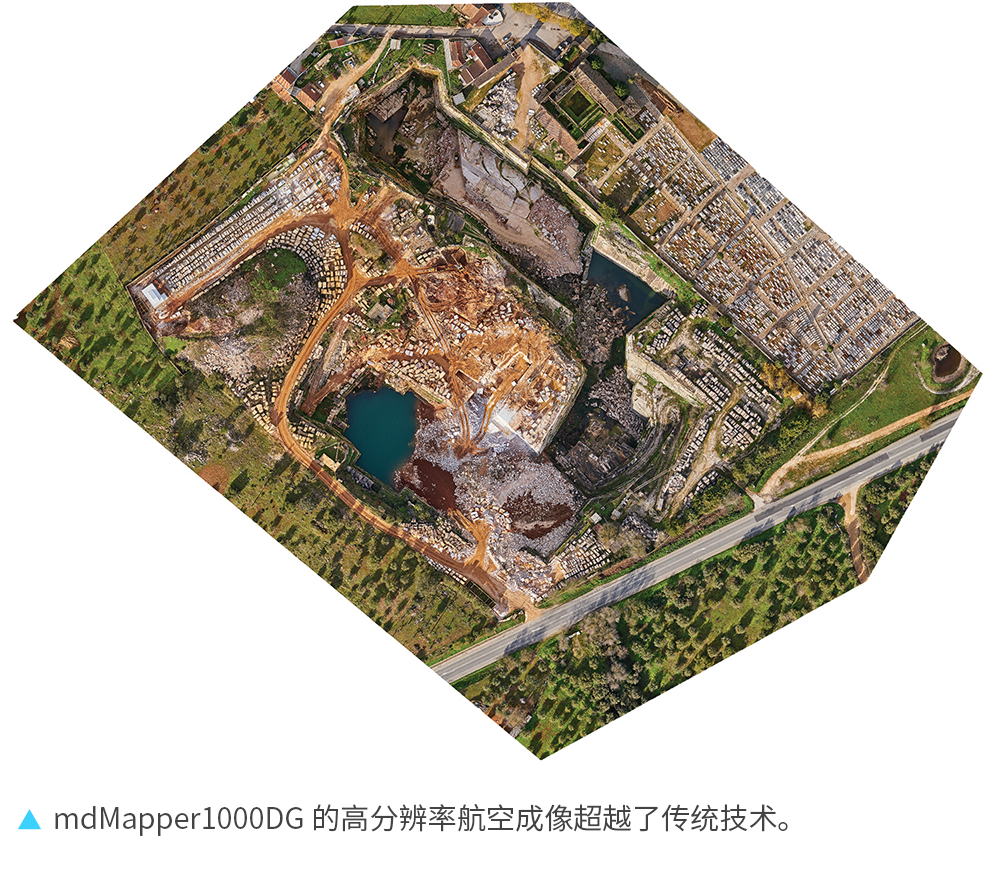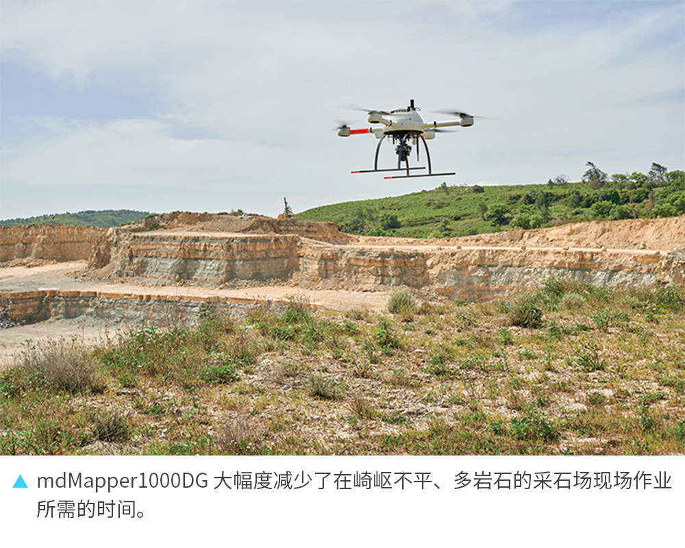 Santos表示:“对于这类工作,像Microdrones提供的mdMapper1000DG系统是必备工具。它配备了4240万像素的索尼RX1R II摄像头,搭配轻巧、防振、底部安装的定制云台。”“通常,一两次飞行便足以覆盖一个典型的采石场。我们将目标分辨率(GSD)设置为2.5厘米/像素,就能获得高度详细的地形图,为客户提供可靠的实际情况记录。”传统测量方法与Microdrones系统获得的结果没有可比性,Santos说:“我们获得的数据是无与伦比的。如果必须通过传统方法来获得同样的密度和数据量,成本就会高得令任何公司都无法承受。”当然,安全是采矿和采石作业中的基本问题。无人机航测解决方案再次远远超越传统测绘方法,“采石场和露天矿山很难踏足,有时还存在滑坡风险,特别是靠近高路堤,靠近作业现场,靠近水池和沉淀池的时候。总而言之,安全问题加上航测能收集的地理数据量,新旧技术的差异太明显了。”Santos说。