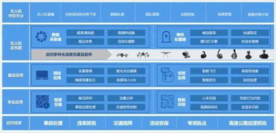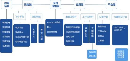 由采集端、无线传输层、应用层、平台层等组成的无人机交警应用解决方案体系,构成了智慧交警的应用闭环。