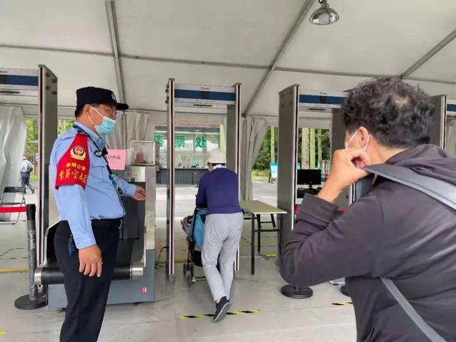 为加快游客入园速度,各入园口安检设备配备充足,除了配备“不接触、不停留、有尊严”的太赫兹人体安检仪外,还有一机两门安检设备,并由现场工作人员用手持安检仪对每位游客进行安检。孕妇以及装有心脏起搏器的游客可以告知现场安检人员,由工作人员进行人工安检。