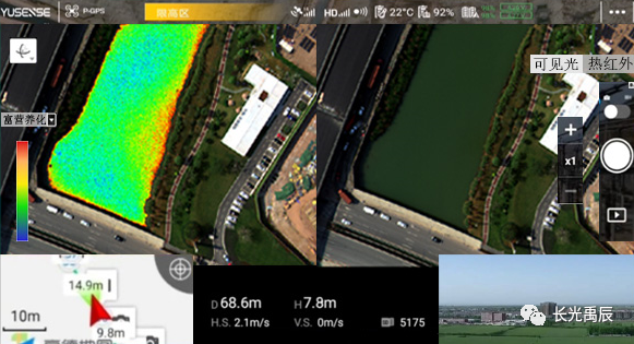 作为长光禹辰首款视频多光谱相机,AQ全系列支持机上实时辐射校正、反射率/光谱指数计算和行业应用反演,并实时输出1080P分辨率的视频级光谱指数和反演结果,河道污染、水面溢油等场景已经业务化。