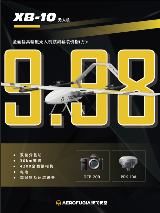 此次亮相的XB-10套装售价低至9.98万元,包含飞行平台、双差分基站、30km链路、全画幅4200万正射相机、电池等,堪称工业级无人机性价比首选。