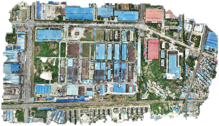 二维一体化系统, 则从垂直摄影的影像出发,经过一系列高效自动化处理,得到高精度、高逼真度的DSM、TDOM(真正射)影像,包括空三、免像控、DSM密集匹配、真正射纠正、接缝线查找、匀色匀光的等功能。