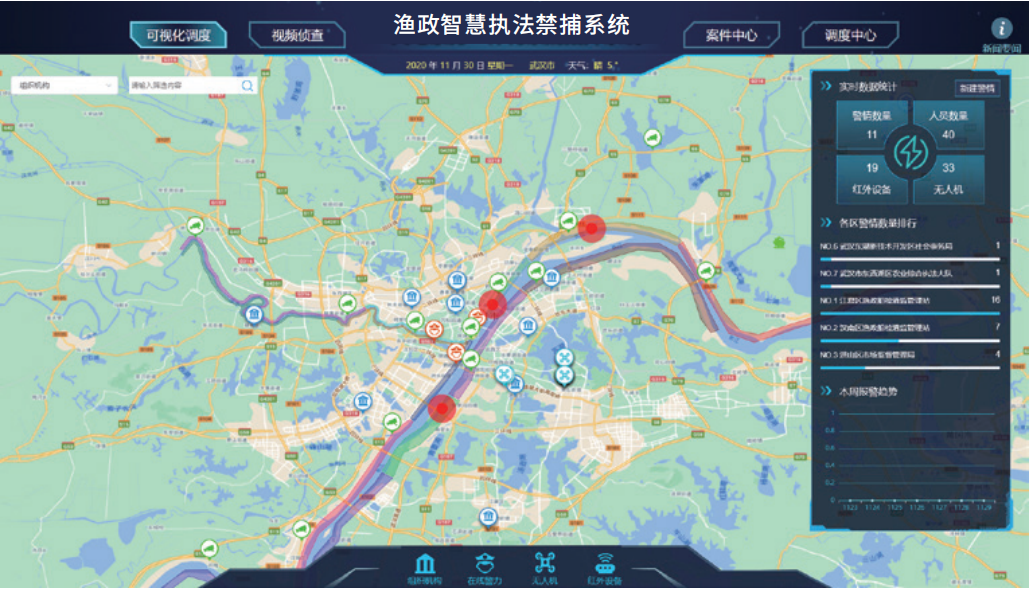 2020年7月起,长江干流和重要支流实行暂定为期10年的常年禁捕,湖北省作为长江流经的重要省份,其辖区水域面积大、水域管理难,省市各地经常发生非法捕捞事件,严重危害长江水域生态环境。而在传统的执法过程中,存在诸多难点痛点,例如江边湖边隐蔽区域多、执法人员巡查难度大,沟通成本大、耗费时间长,夜间执法取证以及执法过程中资料存储难等。