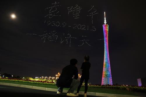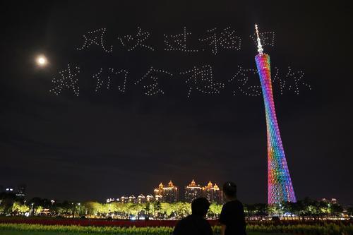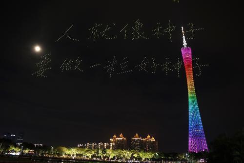 当我们皆以各自的方式来缅怀、送别这位时代的科学巨匠之际,5 月 25 日晚,广州一家无人机飞行表演团队——穿越千机,便借助科技的方式开展了一场光影缅怀活动,以此深情悼念这位一生耕耘的巨人,寄托全社会对袁老的哀思。