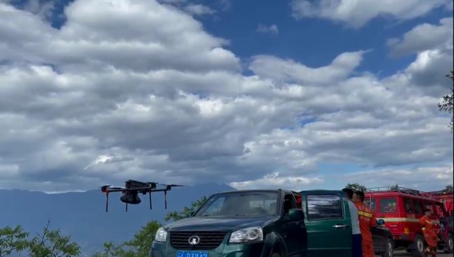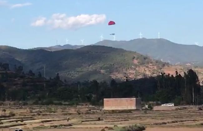 由于震中区域位于山区、净空条件差、起飞场地无法满足滑行起飞等客观条件限制,云南省自然资源厅无人机应急测绘保障分队(云南省基础测绘技术中心)借助弹射架实现无人机弹射起飞,并在当地寻找到一块平坦菜地实现无人机开伞降落,成功完成震中区域无人机应急航拍任务。