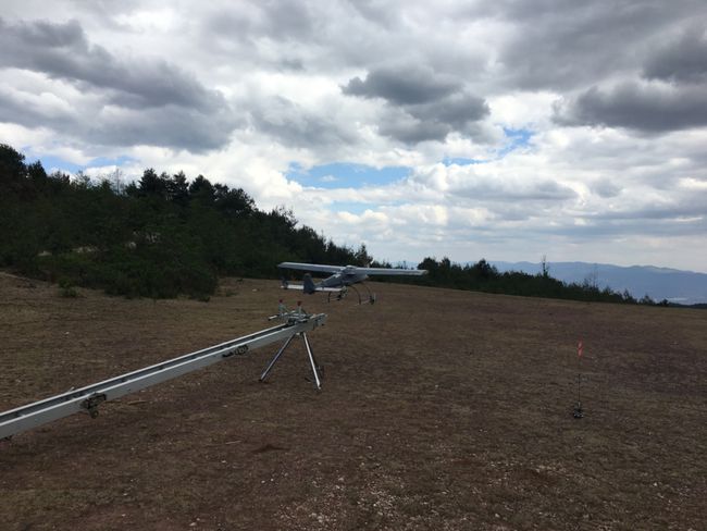 技术人员正在进行固定翼无人机起飞前准备工作。