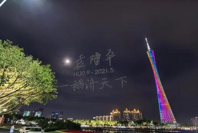 500架无人机在珠水之畔缓缓升起,借助科技的方式开展了一场光影缅怀活动,以此深情悼念这位一生耕耘的巨人,寄托全社会对袁老的哀思。